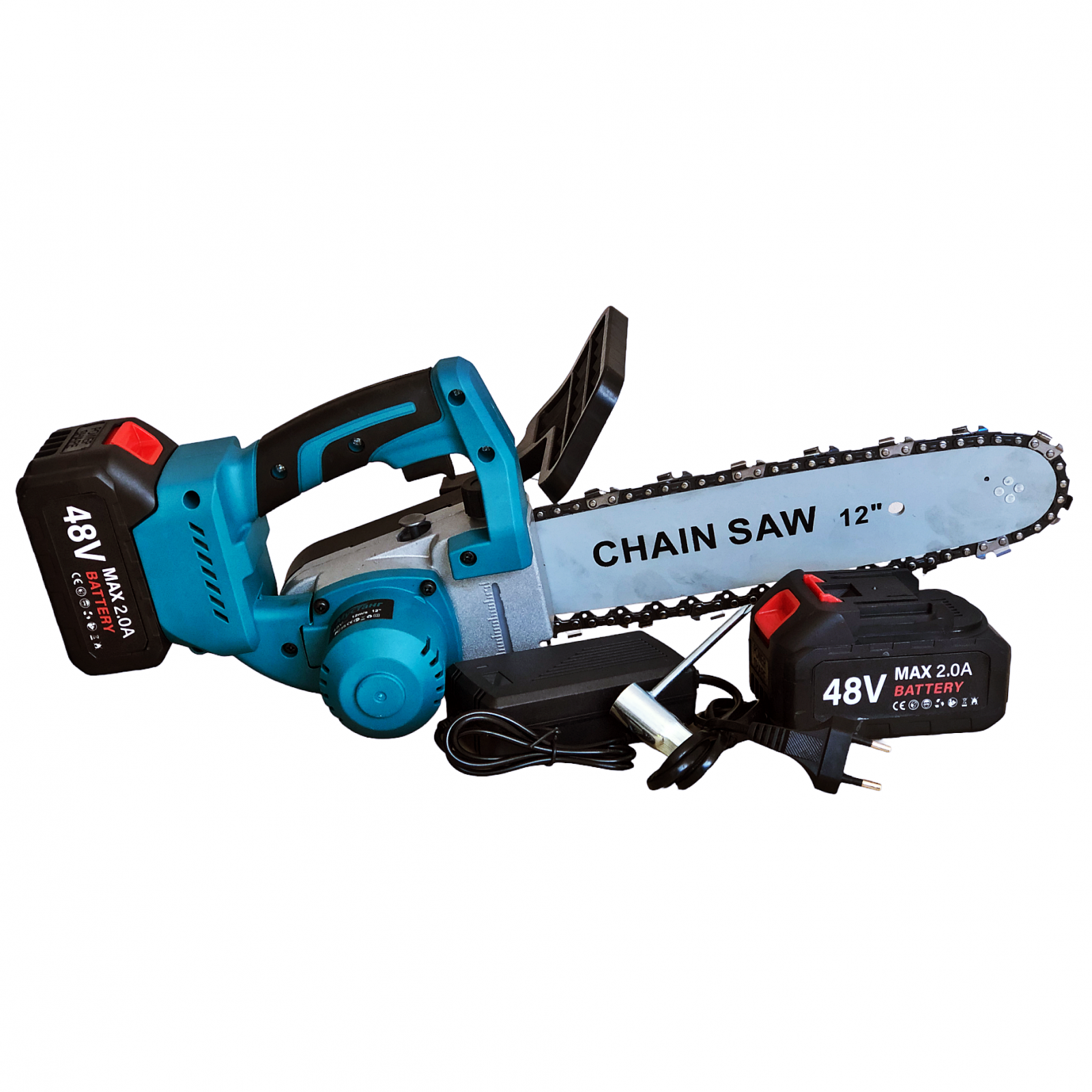 Electrofierastrau cu acumulator - este un fierestrau performant, usor si manevrabil, pentru taierea copacilor si a materialelor din lemn. Motorul electric este alimentat de o baterie de 48 V cu capacitatea de 2 Ah.