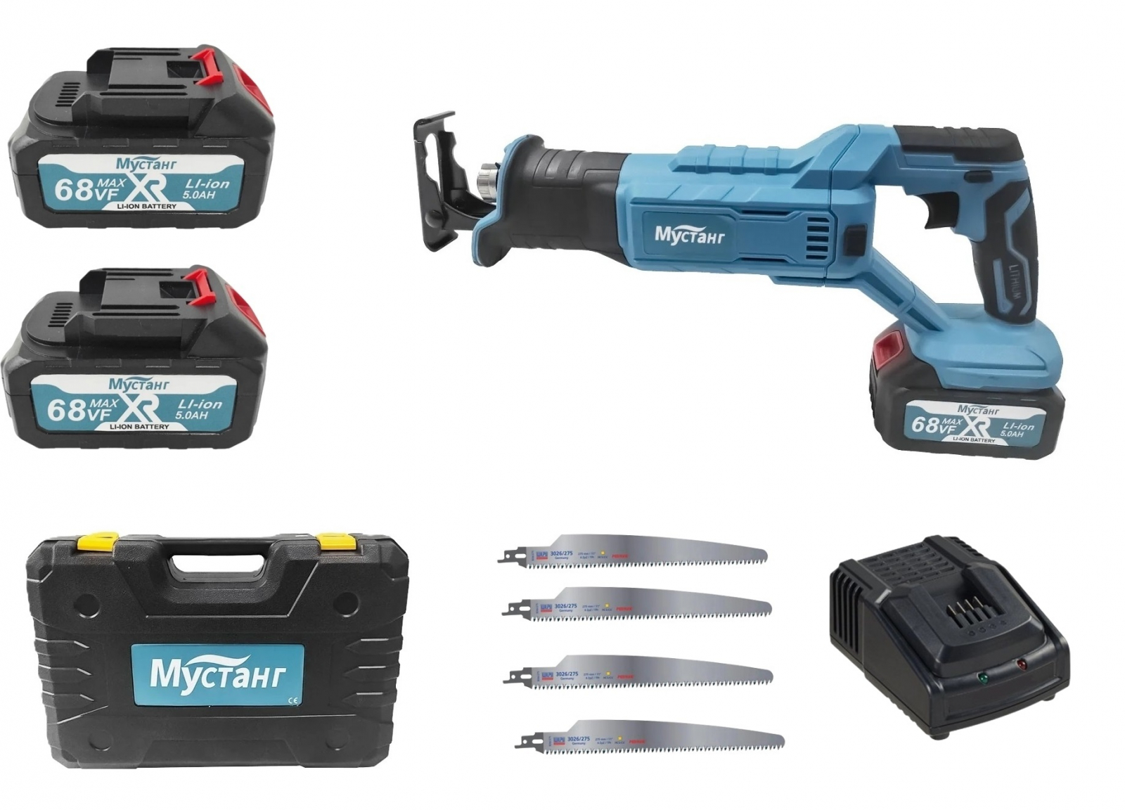 Fierastrau sabie cu 2 Acumulatori , Mustang , 24 V , 5 AH , 4 panze diferite modele