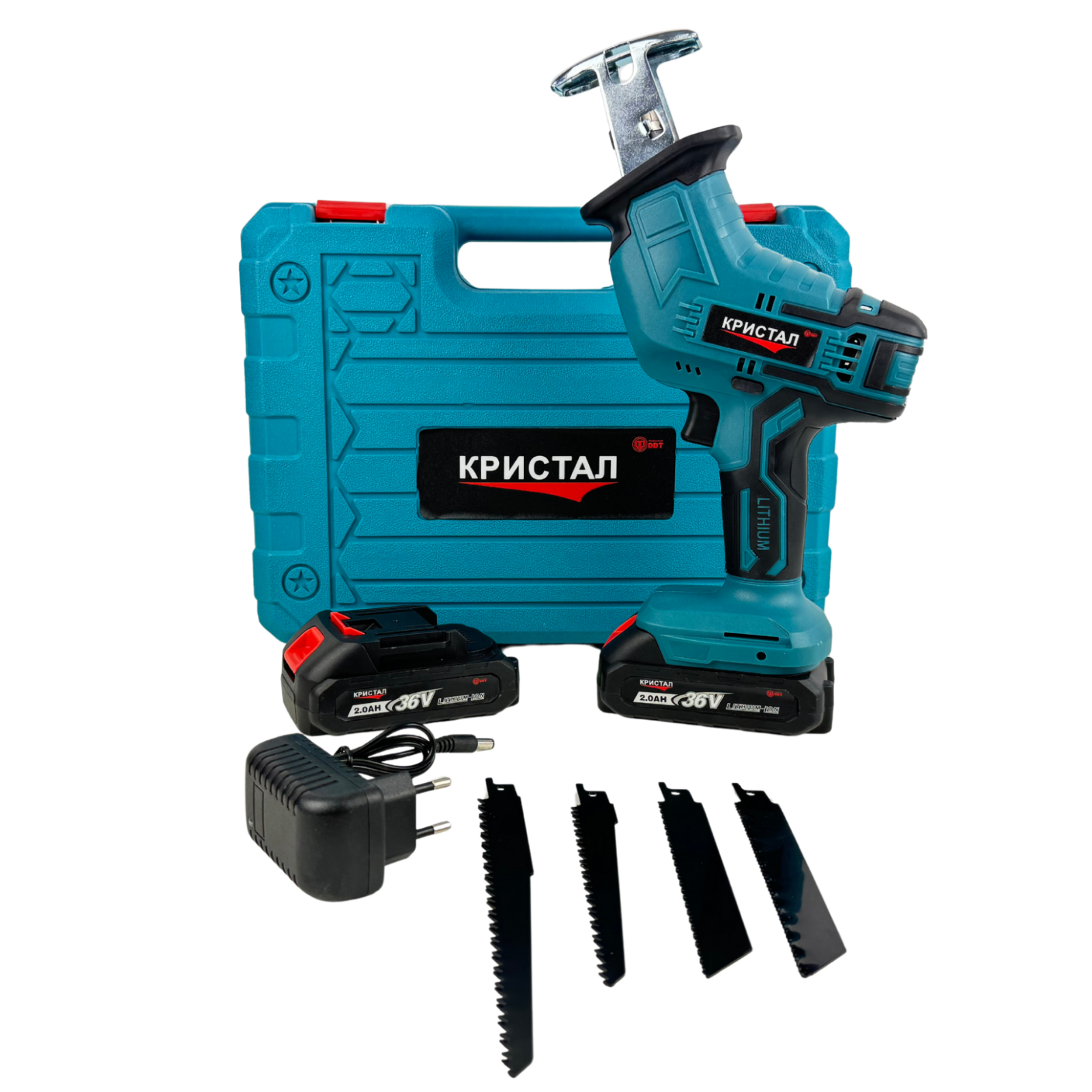 Fierăstrău tip sabie cu acumulator 36V, 2 baterii + încărcător, valiză de transport