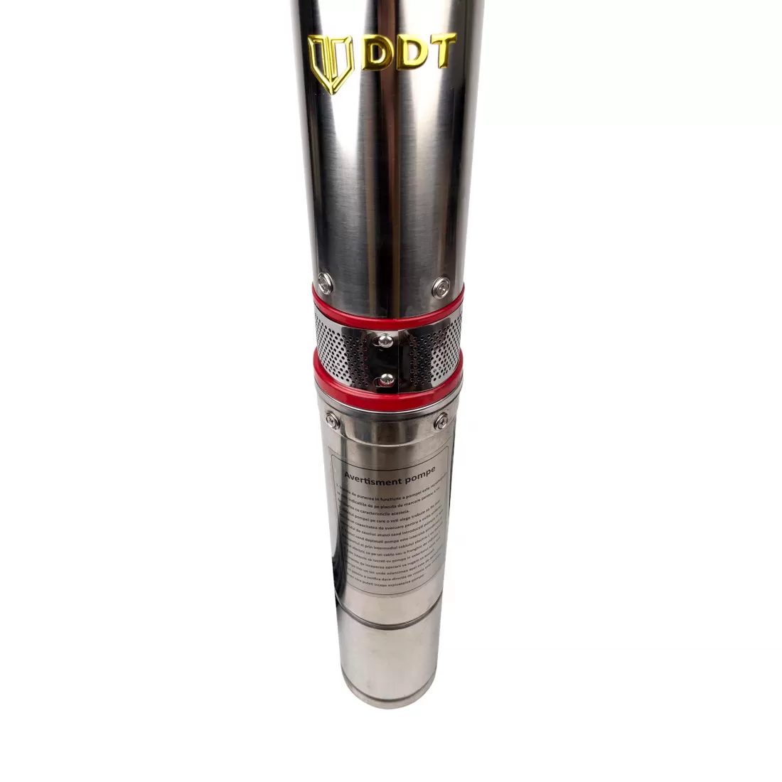 Pompa submersibila de mare adancime, DDT, QJD12-120-1.8, 1800 W, 8 m³/h, cu 12 turbine, din Inox este un model performant de pompa care poate aduce apa dintr-o sursa aflata la o adancime de pana la 120 m. Pentru adancimile sursei de apa de peste 10 m, cele mai potrivite sunt pompele submersibile. Hidrofoarele sunt eficiente atunci cand sursa de apa este la suprafata, pana in 8-10 metri.